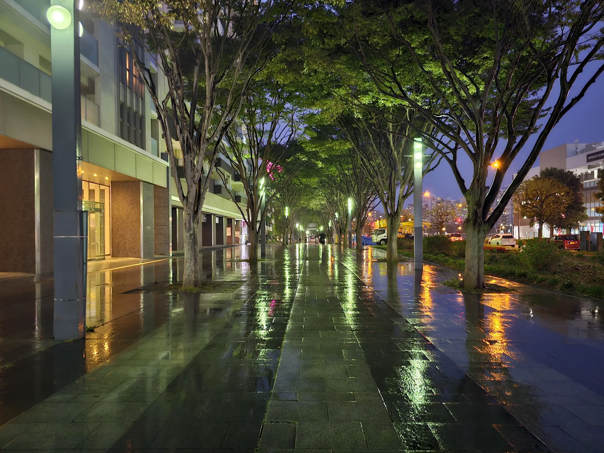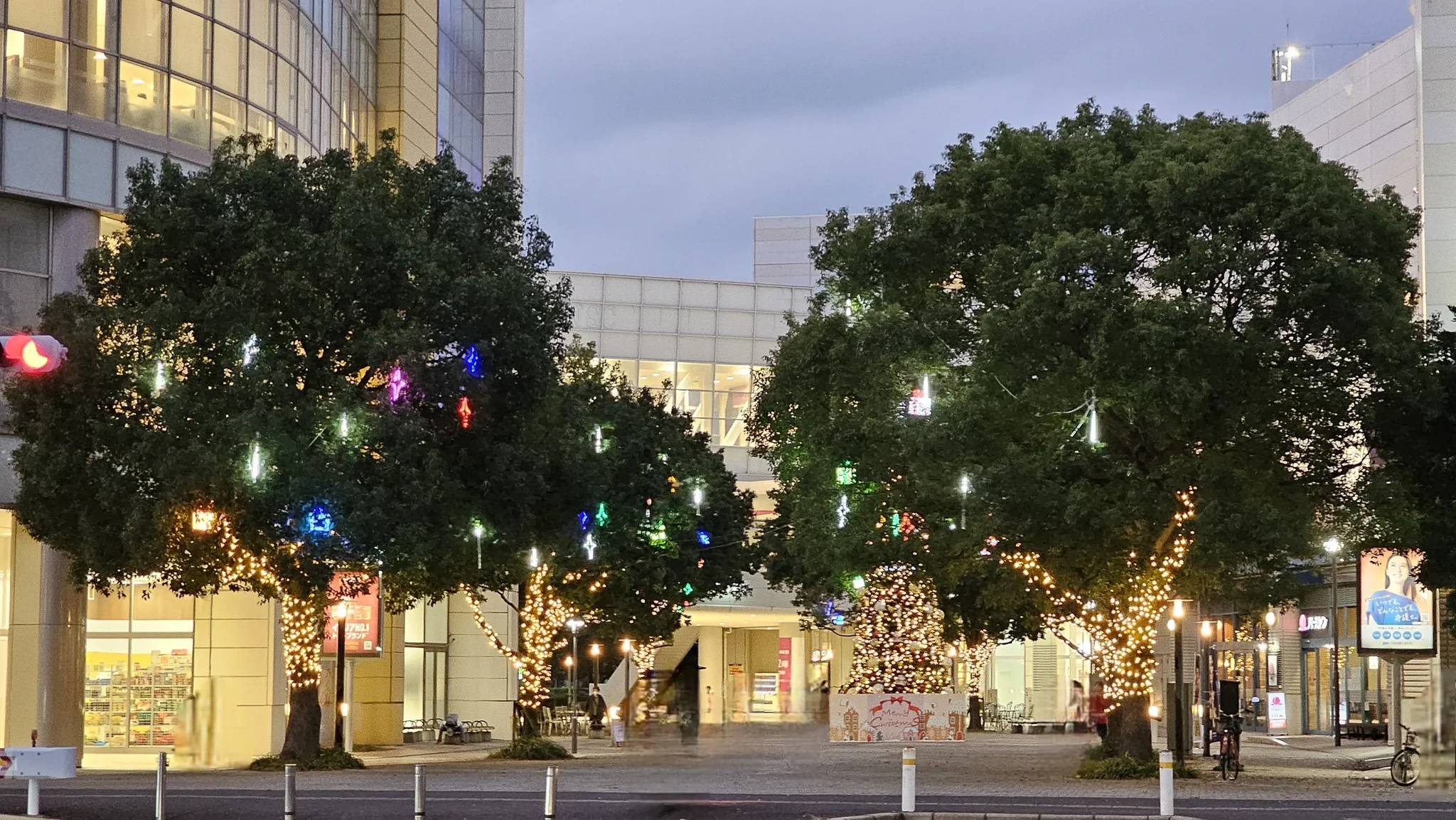 駅前ほどではなさそうだが、木々にいろとりどりの装飾が施されています。